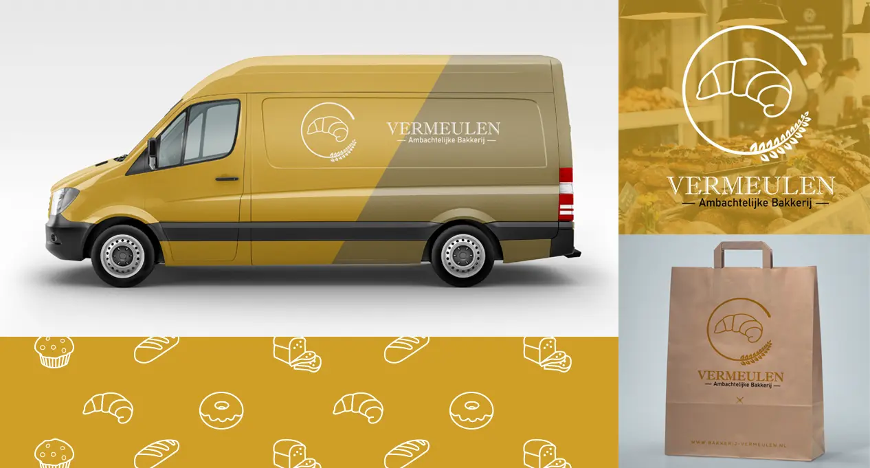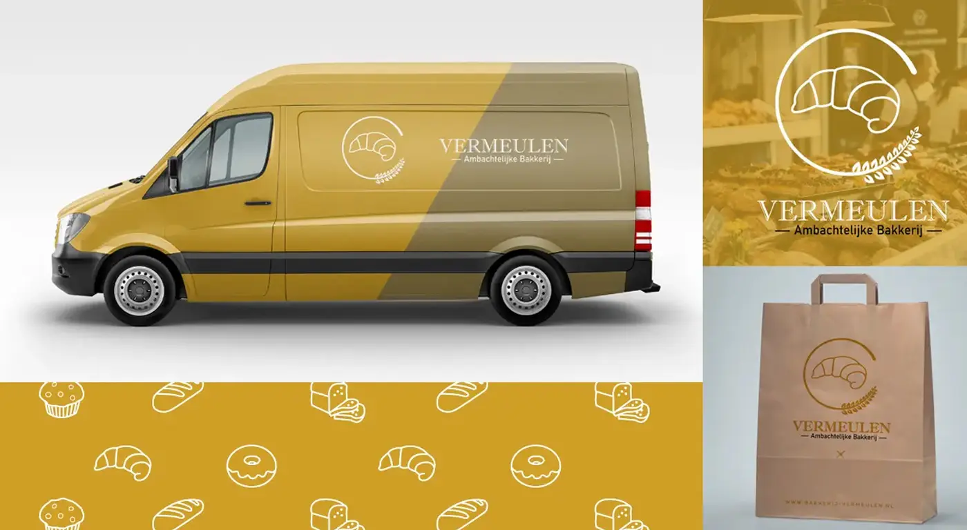 Een traditioneel logo voor een traditionele bakker. We ontworpen een nieuw, strak en herkenbaar logo. Daarnaast creeerde we een branding waarmee de klant tevens alle signage voor de voertuigen in huis had.